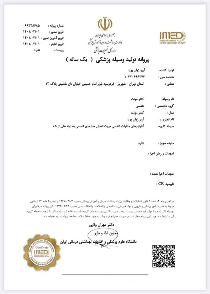 • قابل استفاده برای انواع دستگاه های ونتیلاتور